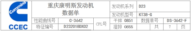 康明斯發動機排放數據單 | |