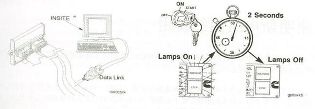 要檢查是否存在現行的故障代碼,應將鑰匙開關轉到“OFF”斷開位置,并將診斷開關轉到“ON”位置上,在將鑰匙開關轉到“ON”接通位置。