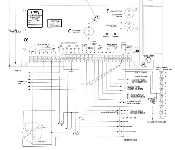 LSM672負荷分配模塊 LSM672負荷分配模塊與其它專用組件一起裝在發電機組控制屏內,該單元安裝在不防礙冷卻空氣自然流通的地方,該單元有三個大負載的電阻,每個電阻消耗的功率高達6.25瓦。 接線 電線連接見接線圖。電線的大小取決于分配模塊接線端可能有的最大電流,端子T~12的電流可高達5安,其余端子小于50毫安(繼電器觸頭除外,該處電流高達10安) 端子N是“wye”組合發電機組的三相電壓的中性連接點。 端字1~6接三相輸入電壓,根據發電機的電壓,選擇其中三個適合的端子,見說明書第2頁。 警告:端子N和1~6有高壓,操作(運轉)時端子蓋必須蓋好! 端子7~12接來自5安培變壓器的三相輸入電壓。儀表板(操縱板)交流器(CT)的伏安足夠大,可進行串聯連接。負荷分配模塊的交流器(CT)的負載為每相6.25VA,這是增加控制屏設備和交流器線路的負載額。注意,一般交流器接到端子8、10、12時要經總工程師批準。發電機并網|發電機手動并機控制|發電機并機控制資料|發電機并網并機控制技術|發電機手動并網并機控制維修服務商| 端子13和14是并車電纜連接端子,能把所有負載分配模塊連在一起,必須注意它們的極性,如果這些電纜長度超過1米,則必須屏蔽,且屏蔽要在端子23處接地。所用的繼電器接觸器必須適合最低電流值,小于1毫安(干接觸時)。 端子15是負荷分配模塊的輸出端接到調速器的端子,如果連接電纜長度超過1米,則必須屏蔽,且屏蔽在端子23處接地。 端子16為正向功率復位(FORWARD POWER RESET)端子,把一個常開的按鈕開關接到一個位于調速器上的+10伏的直流電源,當開關接零時,會使正向功率繼電器自動復位到斷開狀態(OFF)。把端子16接到電池負極可打開監測器。正向功率監測器有程序控制開關點通到端子16。在端子16與電池負極(端子23)之間連接一個1兆歐的電阻,可把原100%開(ON)40%關(OFF)的設定轉換到85%開(ON)和5%關(OFF)的設定。若要更多的程序設定請咨詢GAC公司獲取幫助。 端子17和18是逆功率復位(REVERSE POWER RESET)按鈕開關的端子,兩端子間出廠時就有一條跨接線,用于自動復位。自動復位會使只有在逆功率大于其設定值時內置繼電器才保持通電。 逆功率繼電器可以改為手動復位,這要通過對端子17、18的外開關來進行改裝,即在位于電路板上的端子E4和E5之間焊裝一條導線即可, E4和E5在單元里,開蓋即見。參閱圖2查找E4和E5位置。 用一個常閉的按鈕開關接于端子17和18之間,代替原有的跨接線,當開關打開時,逆功率繼電器將復位到斷開狀態。 端子19和20是逆功率繼電器的輸出端子,接觸器常開,額定電流為10安培(有指示燈)。 端子21和22是正向功率繼電器的輸出端子,接觸口常開,額定電流為10安培(有指示燈)。 端子23是電池負極,接到調速器上的接地參考端子上,不要直接接到電池負極上,否則,地上回路即形成。 端子24接到24伏的直流電源的負極上。 端子25提供一個與發電機組的輸出功率成正比例的直流電壓,接地參考點為端子23。更進一步信息見功率輸出信號部分。 預并車檢查 負荷分配靈敏度調節——全順時針位置 負荷預期調節——全反時針位置過1/4圈 調速器速度設定點——調節所需的速度 交流器(CT)調整檢查需要進行直流電壓測量 測量測試頭(TP1和TP2),觀察儀表的極性,下測試頭TP1為正,其電壓與整功率因數負荷(unity P.F.load)直接成比例,可望測得0~7.5伏的直流電壓,這取決于負荷、負荷分配靈敏度的調節及CT的比率。 在發電機帶有負荷時,檢查交流器(CT)的相位,瞬時的、按順序的短接每一個CT,每次僅一個(在端子7-8、9-10、11-12帶絕緣鉛時做),電壓讀數會減少1/3。如果沒有,則很有可能表示CT不合適或相位不對。相位糾正必須在發電機停止時才進行。 警告:發電機正在運轉時不要拆交流器的接線!有高壓存在!在所有接線完成后,確保接線柱的外蓋要蓋好! 調節 讓發電機與其它機組并車,系統中沒有負載,通過調速器調整每臺機組的速度至個機組的功率表示為零,以及有合適的頻率(50,60或400HZ)。而且調節發電機的交流電壓調節器,使其循環電流為零。這樣就可以把負荷加到系統去調整J。 負載分配 所有發電機組應按比例地分配系統中的負荷,負荷較低的機組要調高。反時針調節負荷靈敏度旋鈕(LOAD SHARING SENSITIVITY)即可增加負荷。 負荷預定 負荷預定(期)已在出廠前調好,在全反時針過1/4圈的位置。為了改善過渡反應,順時針慢慢向前調整旋鈕(LOAD ANTICIPATION)(在機組并車時進行),過渡反應的改善可通過負荷的改變觀察得到。順時針調節旋鈕過快時可引起機組不穩定,建議緩慢地調節。 降速 在某些情形下可能要求降速運行,為了達到降速,從端子13、14上拆去并車電纜,在13和14之間連一條跨接線,順時針調節負載分配靈敏度旋鈕(LOAD SHARING SENSITIVITY)即可增加降速百分比,或者在端子13和14接一個100K的可變電阻,可以得到5%的降速。進一步降速操作可參看《功率控制公告》(POWER CONTROL BULLETINES)。 逆功率 逆功率監測器已在出廠前調好,全順時針位置為最大行程點,要設定逆功率監測的行程點,可反時針調節逆功率監測器旋鈕(REVERSE POWER MONITOR)。對5安培的交流器二級輸出,其調節范圍為0.5%~20%,用實際所需或模擬逆功率來設定逆功率繼電器的行程點。 注:顛倒每個CT接頭的極性,用正常負荷模擬一個逆功率的工況,。調整好后,回復所有CT的連接。 如果需要更長的反向時間,在端子E3和E4(+)上加