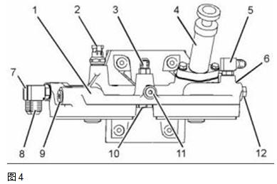 3. 從燃油濾清器底座總成(1)上拆下燃油旁通閥(6)。從燃油旁通閥上拆下O形密封圈。