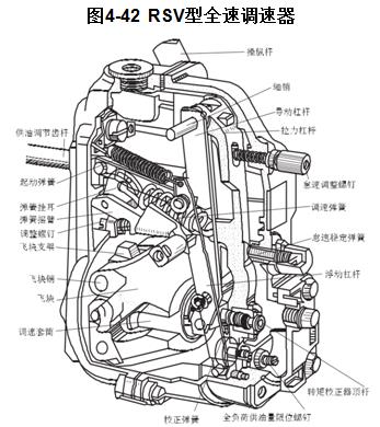 圖4 - 42所示為國產A型噴油泵上采用的RSV型全速調速器,與RAD型兩速調速器基本相同,但為了實現柴油機工作轉速范圍內的全速調節控制,因而增設了以下結構: