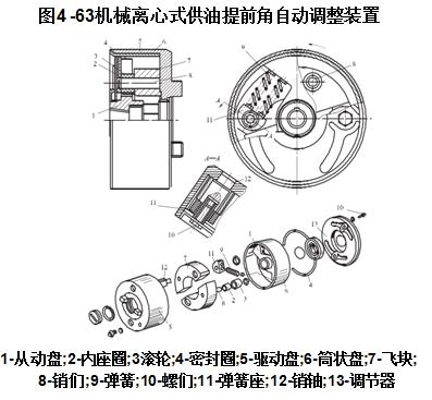 圖4 - 63所示為CA6110-2型機械離心式供油提前角自動調(diào)整裝置的結(jié)構(gòu)。