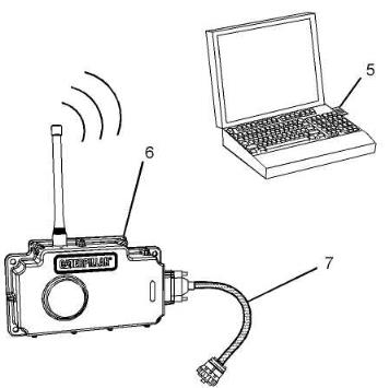 (1)個(gè)人電腦(PC)(5) 261 -4867卡 (6) 239-9955 無(wú)線通訊設(shè)備 (7) 259-3183 數(shù)據(jù)鏈接線 注意:第(5), (6), 和(7)項(xiàng)是261 –3363 無(wú)線通訊適配器組的部件。 執(zhí)行以下程序,連接無(wú)線通訊適配器以使用ET。1. 去除ECM的電源2. 確認(rèn)計(jì)算機(jī)已正確設(shè)置了261 –4867卡(PCMCIA)。 檢驗(yàn)PC卡安裝在計(jì)算機(jī)PCI擴(kuò)展槽。3. 在通訊設(shè)備(6)和服務(wù)工具接頭之間連接線纜(7)。4. 接上ECM的電源。如果ET和適配器不能與電子控制模塊(ECM)通訊,參閱《故障排除》沒(méi)有診斷代碼時(shí)的故障排除“ 電子服務(wù)工具不能與ECM通訊” 。