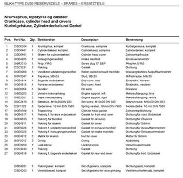 BUKH 船用發動機 DV32 ME, DV32 SME - 零備配件清單 |