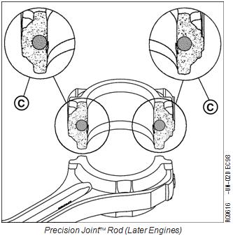 Earlier engines have the traditional tongue-and-groove between the connecting rod and cap (A). Later engines have the Precision Joint rod and cap (B).