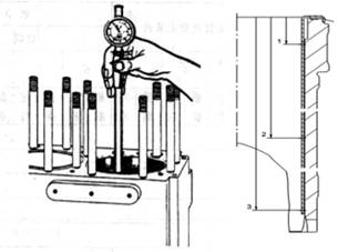 1.測(cè)量?jī)?nèi)徑。檢查進(jìn)、排氣閥導(dǎo)管有無腐蝕現(xiàn)象發(fā)生,用內(nèi)徑表測(cè)量其內(nèi)徑并做記錄。結(jié)合氣閥閥桿外徑的測(cè)量尺寸,計(jì)算兩者之間的間隙。