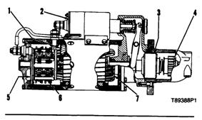(1)磁場(2)螺線管(3)離合器(4)齒桿(5)轉向器(6)電刷套件(7)電樞