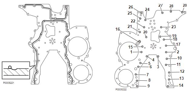 注意 安裝之前的最多 20 分鐘內在槽外側涂上厚約 2 mm(0.0787 英寸)的硅珠,如上圖所示。正時盤按照順序將所有螺栓緊固至下述扭矩:28 ± 4 Nm (20.65 ± 2.95 lbf ft)渭南帕金斯機油濾芯CH10929哪里買,內江珀金斯發動機1106a-70ta廠家供應,白山林德叉車珀金斯曲軸前后油封批發,宜昌珀金斯濾清器代理商,玉樹大宇發動機高壓油泵供應商,德州帕金斯2645a747噴油器市場報價,萊蕪珀金斯發動機價格行情,錫林郭勒卡特315d燃油泵價位,