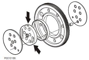 19 檢查飛輪。如有必要則更換環形齒輪,參見齒環,飛輪:更換 203 頁。
