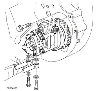 4 將新的 O 形圈安裝到曲軸上并進行潤滑。用相同的潤滑劑潤滑齒輪的外部。將沃爾沃發動機齒輪定位銷安裝到曲軸孔中并確保油泵齒輪與曲軸齒輪嚙合。安裝螺栓并交替擰緊這些螺栓,從而使齒輪不歪斜。根據特殊緊固扭矩 8 頁進行扭矩緊固。