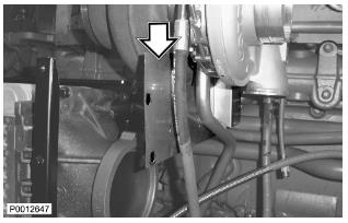 75 僅適用于 D13B-A/C/G/H/K/L,D13C2-A,D13C4-A(雙渦輪增壓器)安裝隔熱罩,但不要完全緊固螺栓。檢查 Y 形管是否固定到固定器內。注意 隔熱罩可能需要在某個方向上移動以固定 Y形管螺栓。因此,隔熱罩螺栓在安裝 Y 形管時才緊固。
