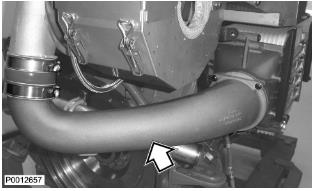 65 僅適用于 D13B-A/C/G/H/K/L,D13C2-A,D13C4-A(雙渦輪增壓器)向上提升增壓空氣冷卻器并將軟管滑到冷卻軟管上。使用所有螺栓固定增壓空氣冷卻器。圖示為帶廢氣門的渦輪增壓器(D13B-A/C/G/H/K/L,D13C2-A,D13C4-A,雙渦輪增壓器)。