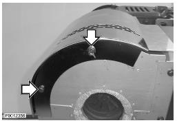 2 松開兩顆螺釘,然后拆下保護(hù)裝置。