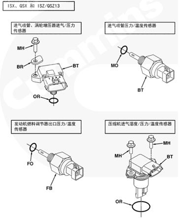 康明斯ISX、QSX 和 ISZ/QSZ13發(fā)動機壓力和溫度傳感器、進氣歧管、渦輪增壓器進氣/壓力傳感器,進氣歧管壓力/溫度傳感器,發(fā)動機燃料調節(jié)器出口壓力/溫度傳感器,壓縮機進氣濕度/壓力/溫度傳感器。