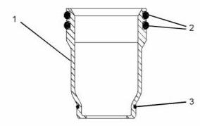 5. 從CAT卡特C13珀金斯2206柴油機電子單體噴油器套筒(1)上拆下O形密封圈(2)和O形密封圈(3)。