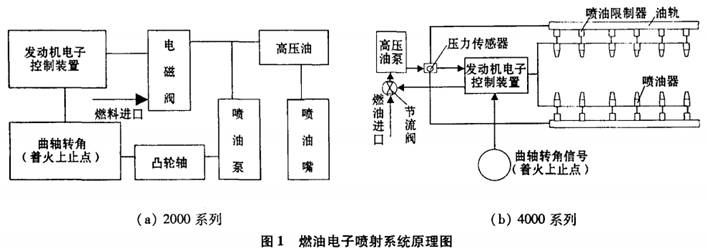 德國(guó)奔馳MTU2000系列柴油機(jī)采用電磁閥控制的電子噴射系統(tǒng),其工作原理如圖i(a)所示¨’。它是一個(gè)電磁