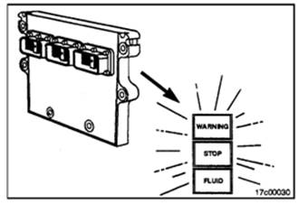 發動機電子燃油系統故障代碼可以在駕駛室內面板上的WARNING指示燈和STOP指示燈看到。