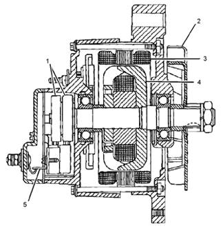 (1)集電環 (2)風扇 (3)定子 (4)轉子 (5)電刷組件