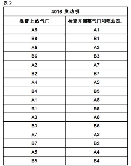按照表2所示的順序設置噴油器正時銷并調整氣門間隙。
