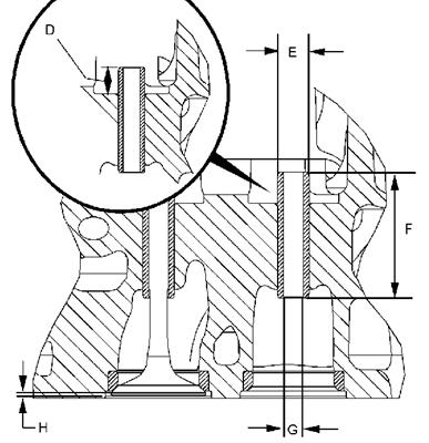 (E) 氣門導(dǎo)管的外徑 13.034 至 13.047 mm(0.51315 至 0.51366 in)