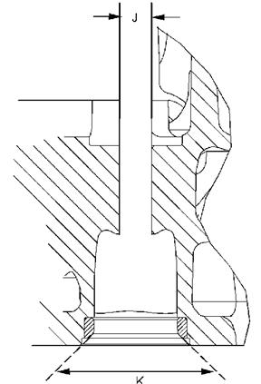 (J) 缸蓋中原有孔的直徑 13.000 至 13.027 mm(0.51181 至 0.51287 in)