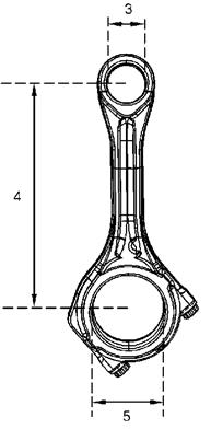 (5) 連桿軸承精加工孔的直徑 72.025 至 72.05 mm(2.8356 至 2.8366 in)