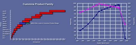 康明斯Cummins QSK23用于工業市場有760馬力 及 950馬力兩種功率規格。 發電機組應用有最大到1200馬力的4種功率應用規格。