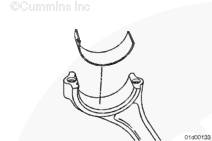 將下康明斯軸承安裝在連桿蓋上。確保對正定位舌。