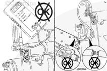 如果萬用表不顯示電壓值,檢查連接起動馬達(dá)電磁閥與蓄電池的電纜是否斷裂。并檢查端子是否松動或腐蝕。