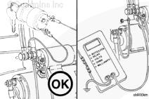 將萬用表的正極 (+) 表筆與電磁閥“S”或開關(guān)端子相連接,將負(fù)極 (-) 表筆與底盤或發(fā)動機(jī)接地位置相連。