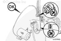 如果連接起動馬達(dá)電磁閥與鑰匙開關(guān)的導(dǎo)線沒有松動或損壞,且起動馬達(dá)不工作: