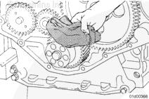 用塑料油封導向工具將曲軸前油封引導到曲軸上,將前齒輪室蓋安裝到發動機上。
