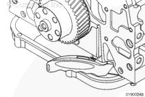 注: 正確支撐前齒輪室蓋的機油油封法蘭,防止損壞機油油封和前齒輪室蓋。