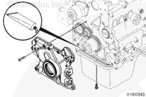 注: 安裝前齒輪室蓋前,先確保在缸體、油底殼與前齒輪室蓋的相互接合面上涂敷了密封膠(零件號 3164067)。