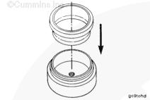 將康明斯油封置于油封安裝工具上(零件號 3824498),油封防塵唇朝外。