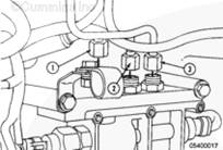 拆開控制閥體的燃油供應(yīng)軟管(1)、正時(shí)壓力管(2)以及油軌壓力管(3)。