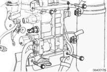 安裝4 顆螺栓固定控制閥體總成、線束和支架。扭矩值: 45 n.m [35 ft-lb]