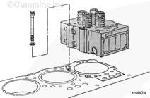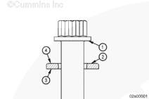 如果懷疑缸蓋螺栓的螺栓長(zhǎng)度有問(wèn)題,檢查缸體頂部與螺紋孔中的第一個(gè)螺紋之間的距離。如果距離約為 44 mm [1.75 in],必須安裝長(zhǎng)度為 203 mm [8 in] 的螺栓。