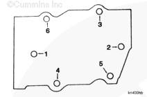 注: K38 發(fā)動(dòng)機(jī)上使用了兩種不同長(zhǎng)度的缸蓋螺栓。發(fā)動(dòng)機(jī)生產(chǎn)序號(hào) (ESN) 大于 33101470 的發(fā)動(dòng)機(jī)和所有維修用缸體上使用長(zhǎng)度為 203 mm [8 in] 的螺栓。ESN 小于 33101470 的發(fā)動(dòng)機(jī)上使用長(zhǎng)度為 170 mm [6.75 in] 的螺栓。 K50 發(fā)動(dòng)機(jī)上使用的螺栓(黑色)長(zhǎng)度為 203 mm [8 in]。