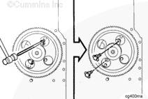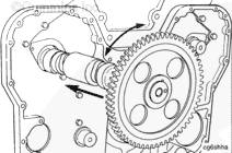 三個惰輪、兩個凸輪軸齒輪和曲軸齒輪都帶有裝配時用于對正的標記。未正確對準會造成發動機嚴重損壞。