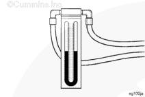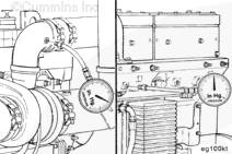 要測試空-空中冷器有無過度的堵塞情況,則需將壓力計的一端安裝到進(jìn)氣歧管中,將另一端安裝到渦輪增壓器壓縮機出口中。以最大功率 (rpm) 和負(fù)載運轉(zhuǎn)發(fā)動機。觀察壓力計(零件號 3824718)或等同物,如果壓差高于 13.5 kPa [2 psi],則檢查空-空中冷器和管路有無內(nèi)部堵塞。如有必要,維修或更換。請參考本服務(wù)公告中的“空-空中冷器系統(tǒng)的清潔和檢查”。