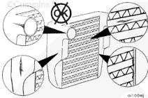 檢查空-空中冷器有無裂紋、孔洞或損壞。檢查管、散熱片和焊接處有無開裂、斷裂或其它損壞。如果存在任何損壞而使空-空中冷器無法通過空氣泄漏檢查,則空-空中冷器必須要進(jìn)行更換。將空-空中冷器安裝到車輛上。