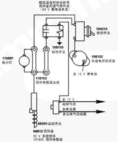 圖 14. 預熱塞式預熱器接線圖 - 24 V 系統。