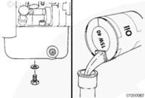 次級位置,從機油濾清器座上拆下壓力端口螺塞(箭頭)。只要它們是臟的機油端口,就可以使用備用位置。