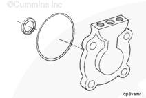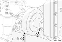 水泵漏水孔 (1) 處有少量化學(xué)堆積物或出現(xiàn)條紋屬正?,F(xiàn)象。不要維修或更換水泵 (2),除非確認(rèn)確實(shí)泄漏。有關(guān)更換水泵的信息,請(qǐng)與 Cummins® 特約維修站聯(lián)系。