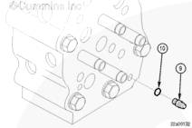 將密封墊圈 (10) 和管嘴 (9) 安裝進缸蓋的冷卻液排氣口。
