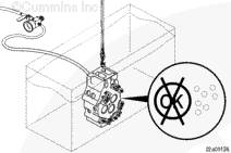 使用溶劑清洗康明斯QST30缸蓋。檢查有無斷裂的彈簧或其他損壞。