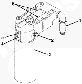 1供油接頭,2燃油出口接頭,3燃油濾清器,4供油溫度傳感器,5供油壓力傳感器,6燃油供應(yīng)泵 1 和 2。