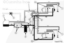 升機型 燃油輸油泵 (4) 從客戶燃油油箱或常用油箱 (1) 中抽出燃油。燃油通過康明斯或客戶預濾器(2)和燃油連接塊(3)循環。然后燃油流入燃油輸油泵(4),在輸油泵中增壓,并通過發動機上的燃油濾清器(5)循環。燃油流過燃油切斷閥 (6),然后流入噴油泵 (7),噴油泵使燃油達到噴油壓力并在適當的時間將燃油輸送到每個噴油器 (9)。