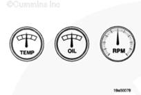儀表標定特性允許 GOEM 安裝的發動機轉速、冷卻液溫度和機油壓力儀表標定至 ECM 儀表驅動程序(0 至 1 mA)。